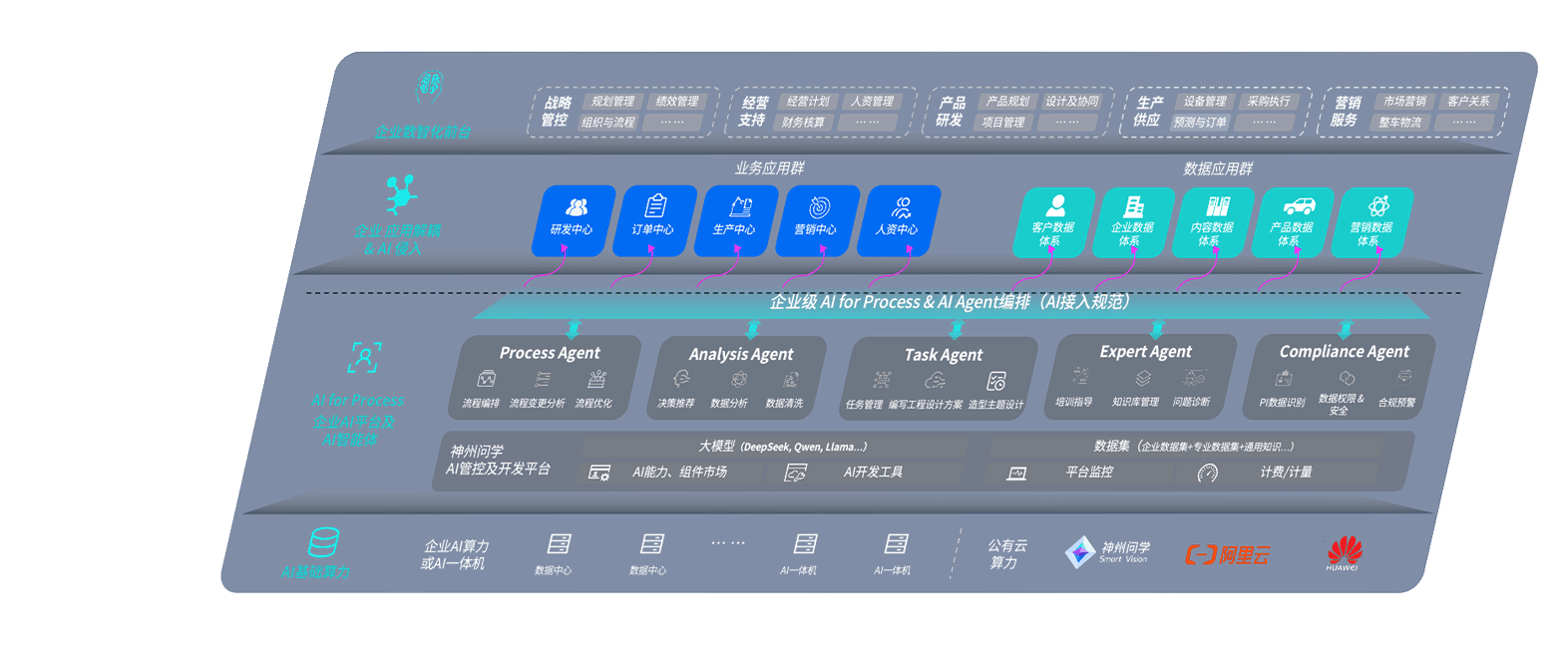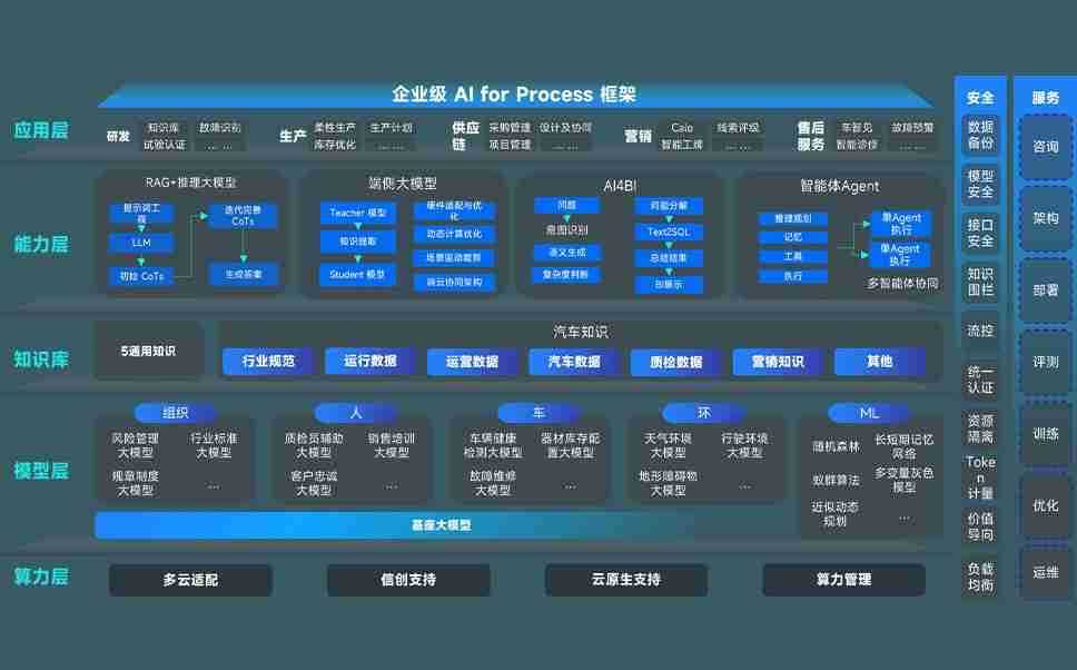 KY开元问学智车解决方案是一套基于AI技术的汽车行业智能化系统,,,覆盖从底层算力到顶层AI应用的全栈方案。。。。方案由算力层、、、模型层和应用层组成:算力层,,,,方案支持多种一体机配置,,,具备云端灵活部署、、、多云适配以及动态优化计算资源的能力;模型层,,,,KY开元问学平台版提供了企业级AI应用一站式构建与管理平台,,,支持基于后训练强化技术的汽车企业专属模型的训练、、、评测和运营;应用层,,KY开元问学DeepSeek版提供包括超级员工、、、智能招采、、、、智能营销、、智能客服、、、AI for BI等一系列解决方案,,,,可助力汽车行业实现数字化转型,,,让管理更智能、、、响应更敏捷。。。